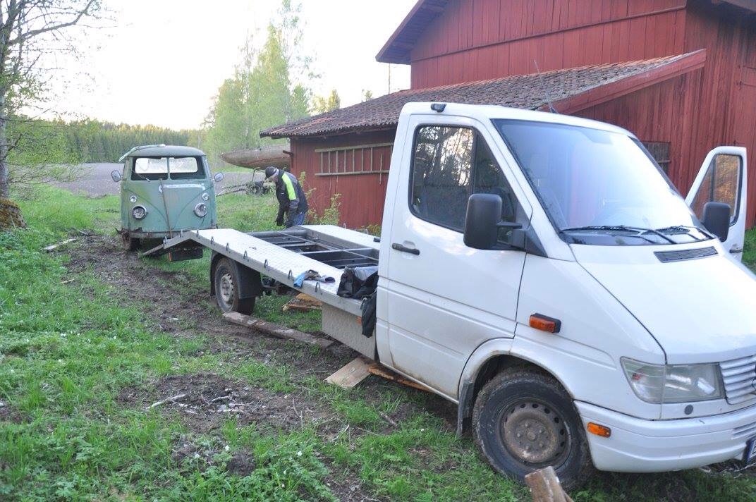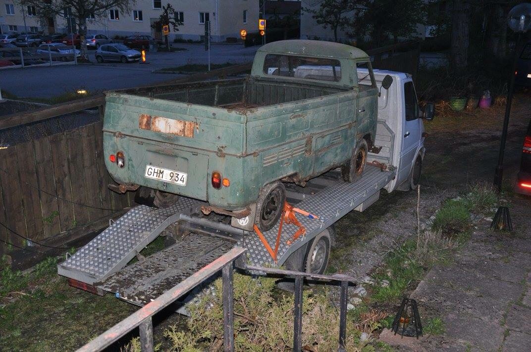 Det blev såklart inbrott. Ungar har kastat sten och förmodligen andra har stulit det mesta som var avskruvbart. När tillslut också motorn försvann blev det bara tvunget att få bilen flyttad. Kanske var det också startskottet till att börja mecka VW igen!!