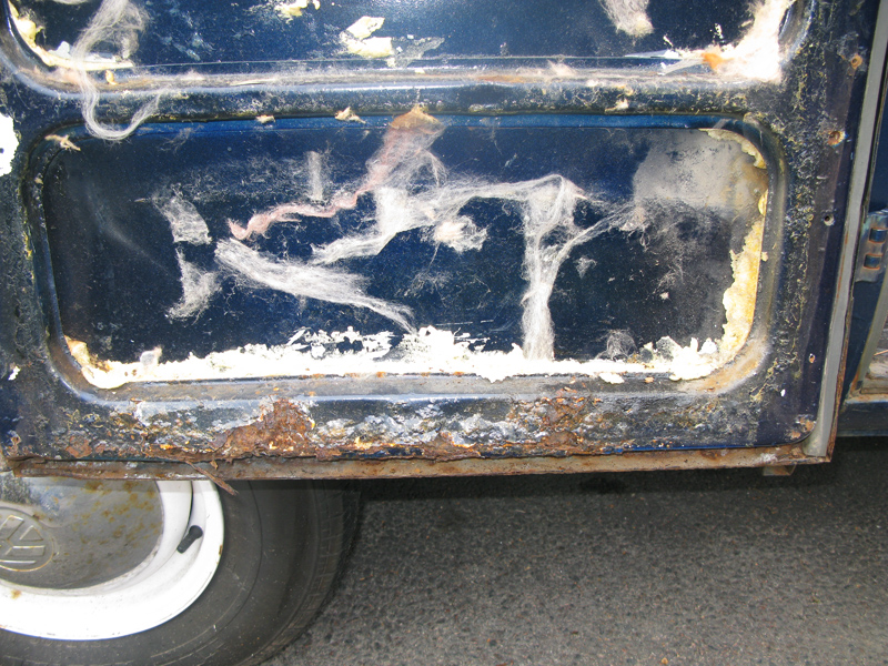 Bakom alla paneler så dolde sig ingen rost. Förutom i lastdörrarna som är riktigt kexiga längst ned. De hade också sprutat in skum i hålrum och ljudisolerat med diverse dämpmaterial.