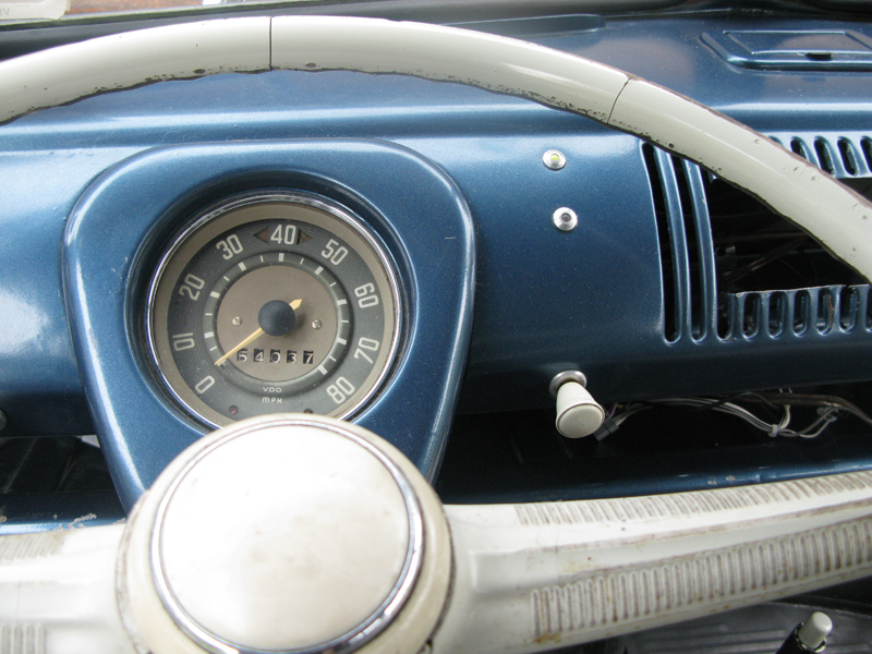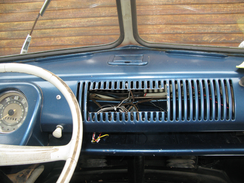 Och instrumentpanelen har fått sig en omgång, med modern radio, extra lampor och ett extra stort hål att hålla sig i. (Jag gissar att det suttit ett cigarrettändaruttag där. Vad tror ni?)
