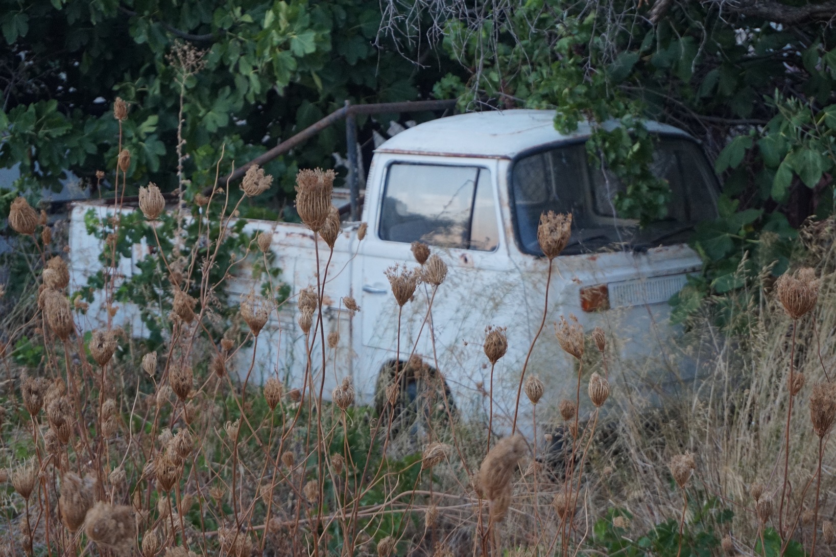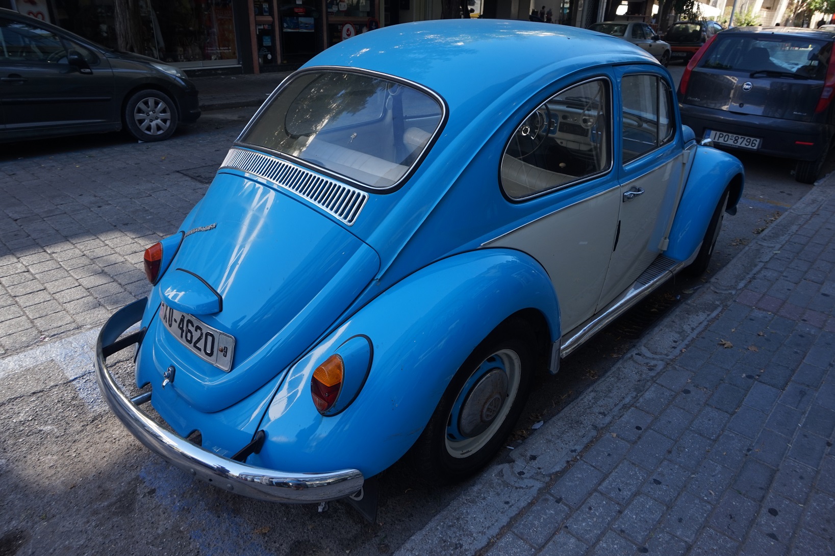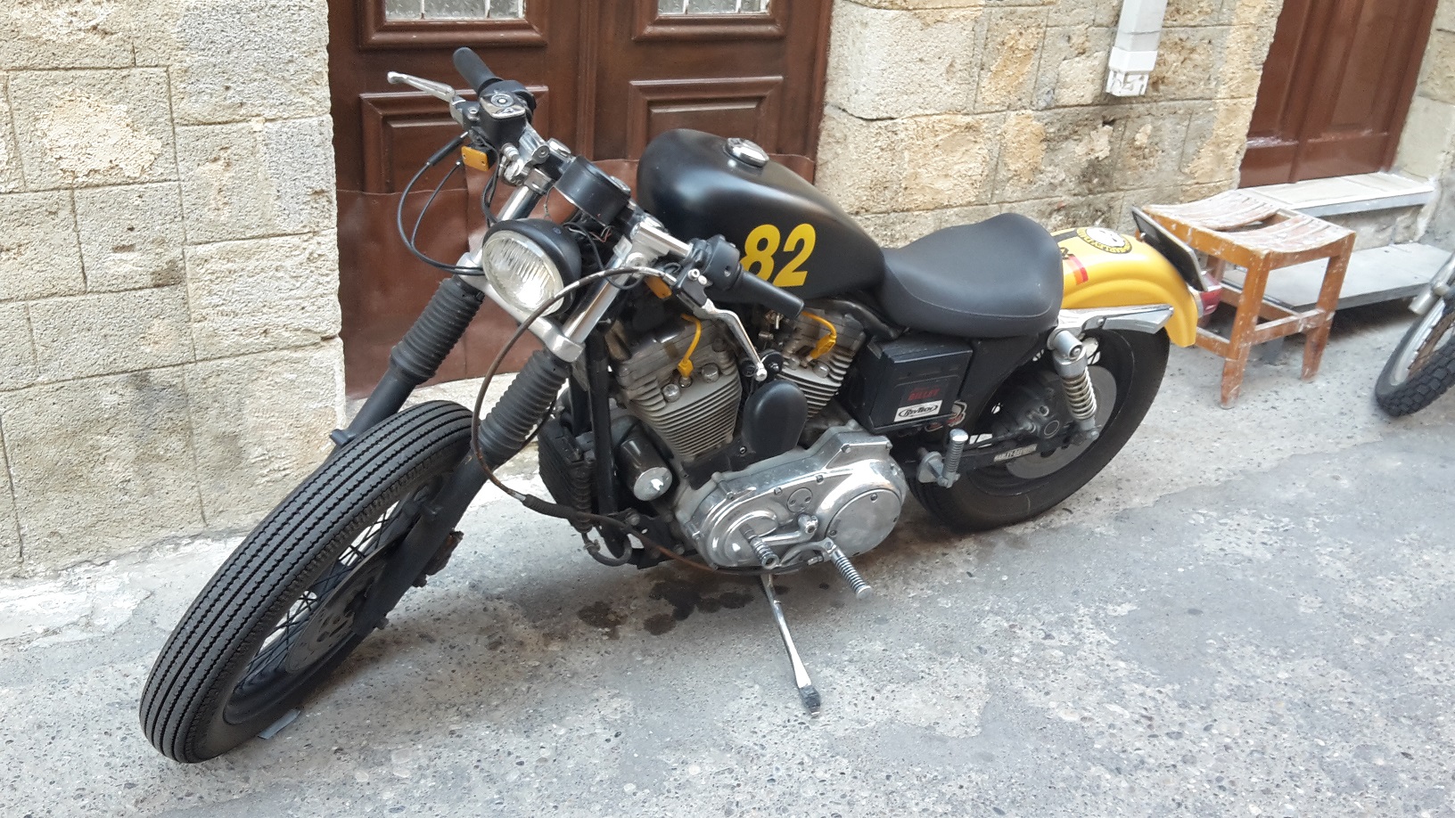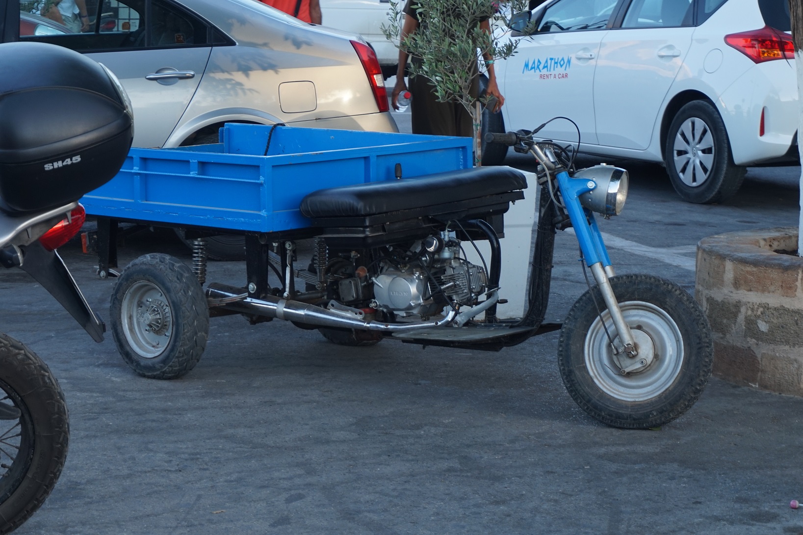 Att det inte hänt så mycket här kan förklaras med att fönster, på huset, har renoverats men även att vi varit på Rhodos i två veckor. Lite annorlunda bil-flotta, ganska mycket nytt men sen fanns det lite gammalt om man bara tittade lite runt hörnen. Fick god hjälp av barnen. Satt i bilen och fundrade på om man skulle se någon cabbe, så dök denna upp. Den har stått där ganska länge. Undrar varför de satt i en tidigare lim-ruta för, var det för att föråldra den eller fanns det inga cabbe-rutor??? Café-räser av en sportster, ja varför inte. Riktigt lyckad:) Renaulten var dragplåster till en biluthyrningsfirma. Fanns ganska många "loppor"
