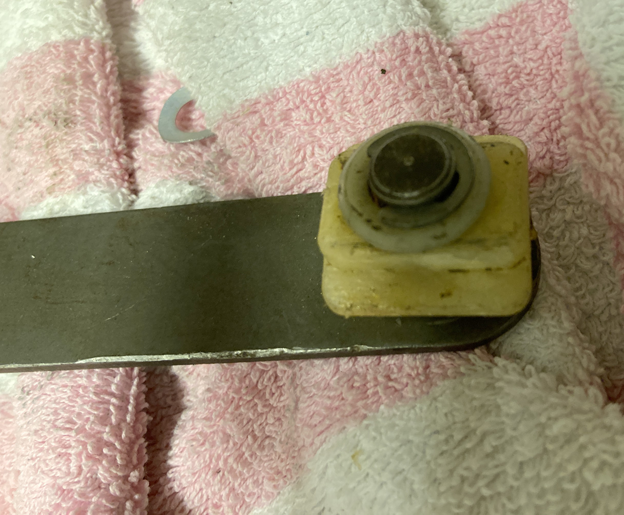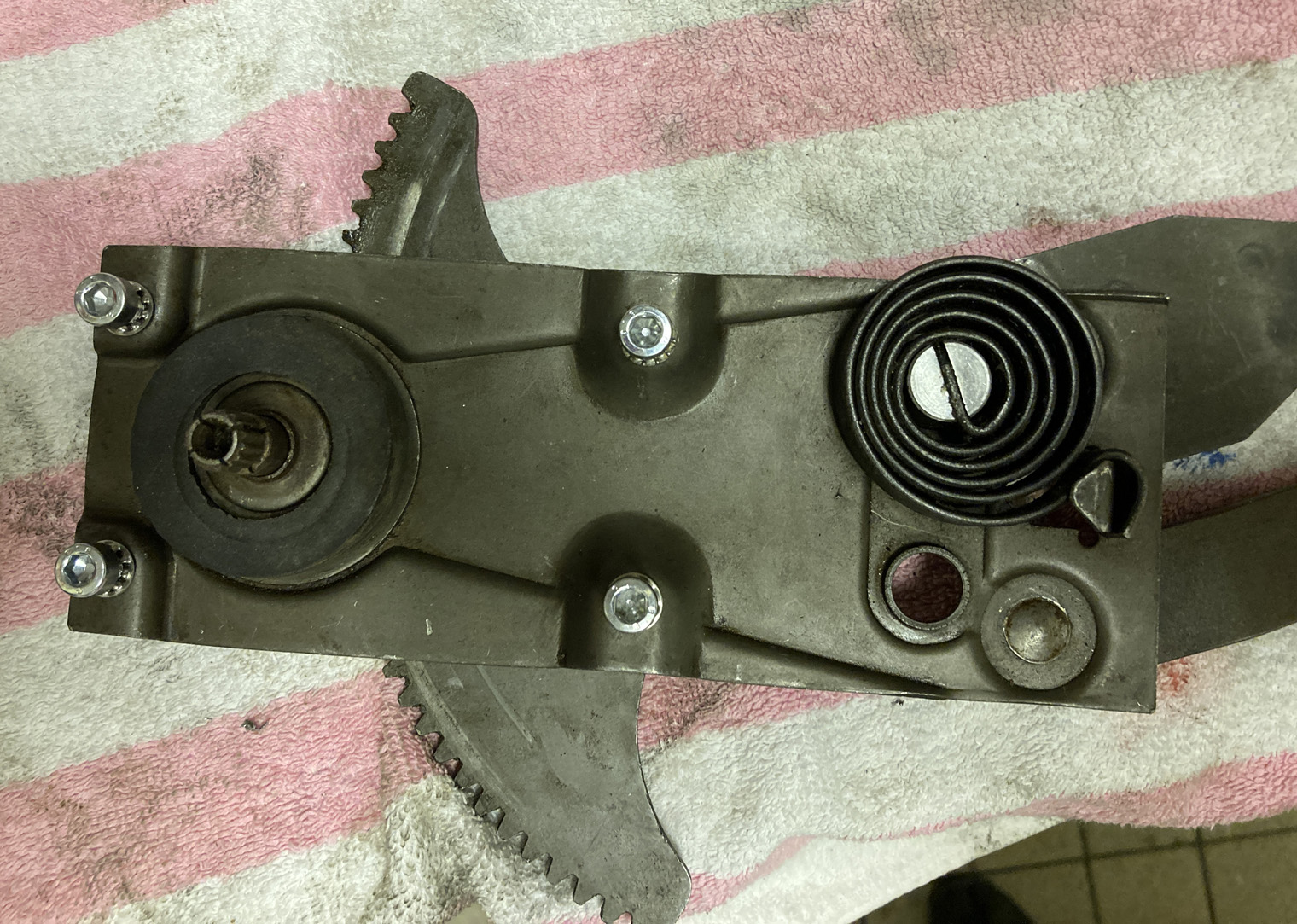 Urtrampningslagret sitter på denna modellen på tryckplattan. Det är lite fram och tillbaka mellan olika årsmodeller. Glömde att ta en bild på lagret innan montering så här sitter det redan på plats. Monteras innan man sätter på tryckplattan då det sitter fast med ett clips på insidan.