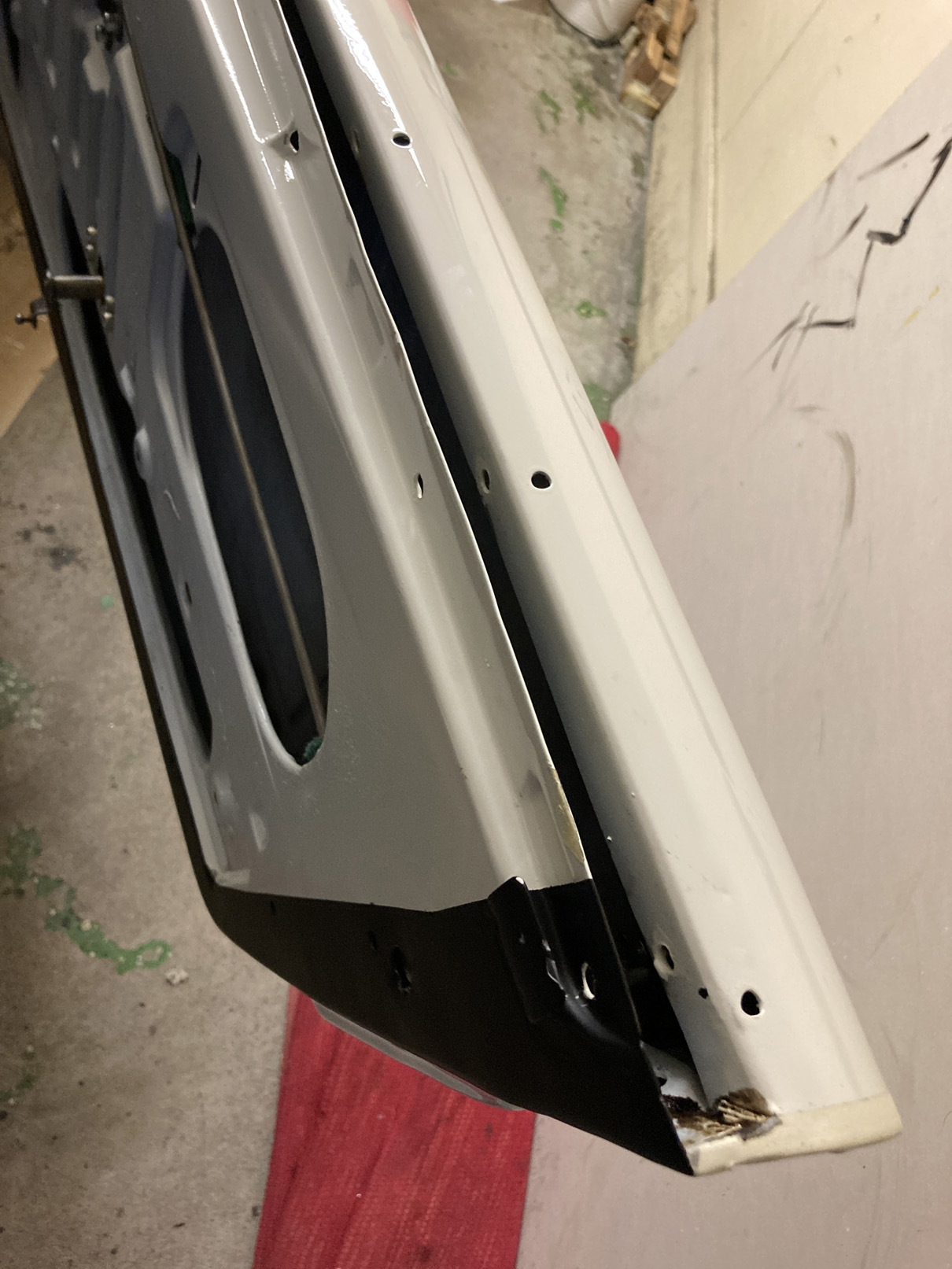 När jag tittade närmare på de lister jag har, sprängskisser och mina dörrar så förstod jag att något inte stämde. Mina dörrar är (tydligen) lagade i ovankant. Den kanten viks in och där ska det vara en filtlist. Den har fem nitar som ska sitta i hål. Inga hål...