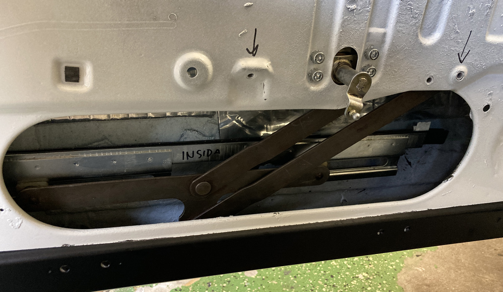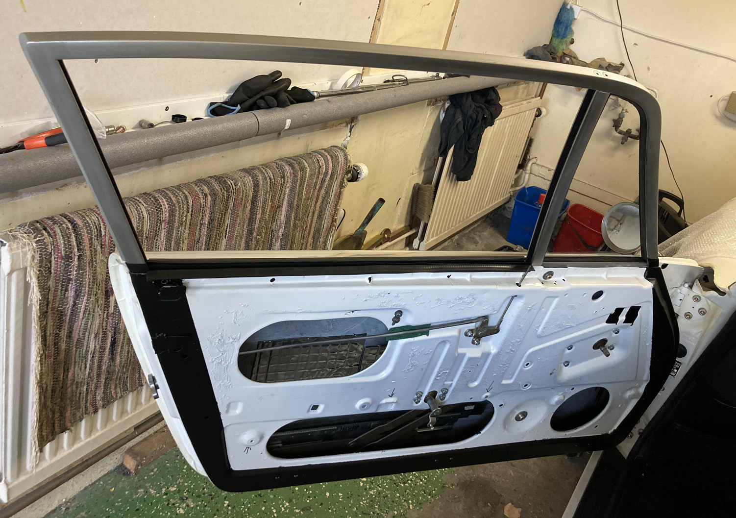 Att få hissar och fönster på plats var inte alltför svårt. De uttagna hålen på listen möjliggör montering i dörren. Sedan när glaset var på plats kunde jag sätta dit filtlisten. Smörjde upp plastdelarna med siliconfett.