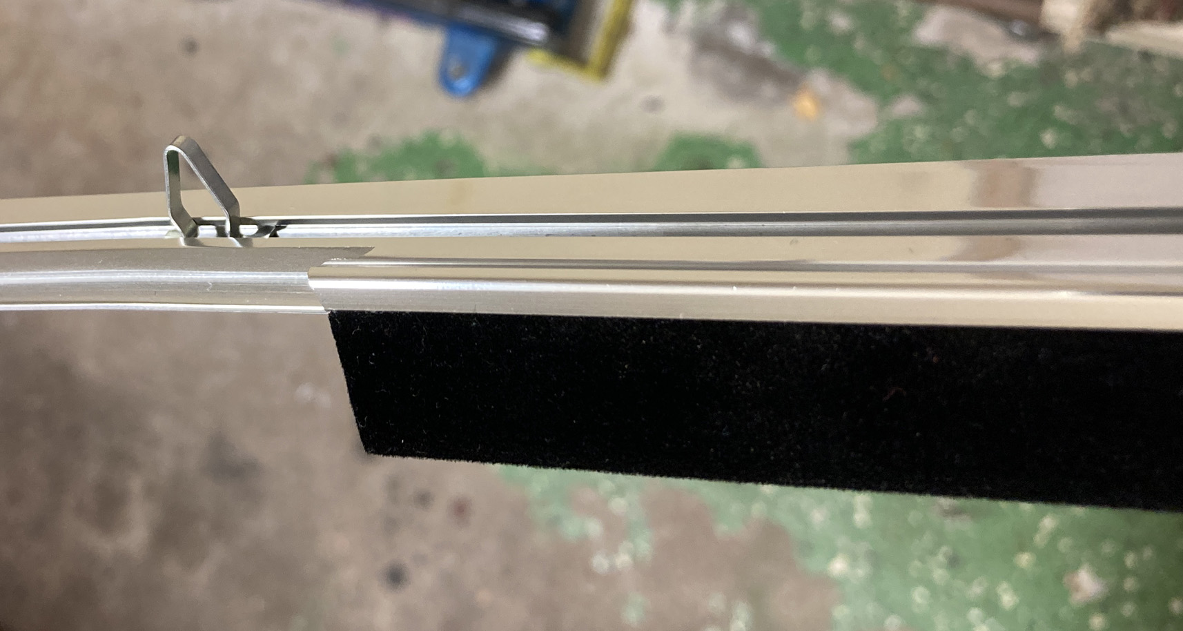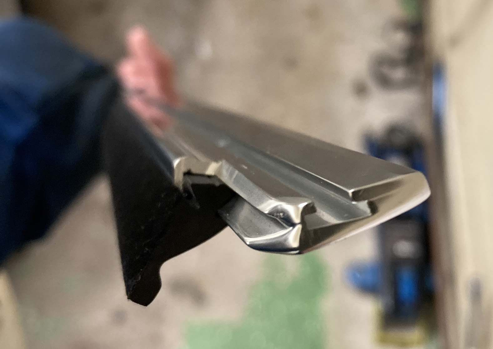 Det sitter även en filtlist på insidan av rutan som man enkelt klämmer över plåten. Som sista topping så sitter det en dekorlist på utsidan. Den har en ganska avancerad profil där man skjuter i en list som verkar som en gummiskrapa mot rutan.