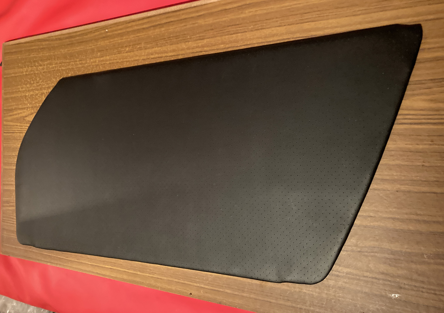 Som ni såg på förra inlägget så fattas nu bara listen högst upp. Det är en ganska stabil pjäs med en metallbas och hårt skum. Denna lilla rackaren var riktigt svår att få till. Klädde om den två gånger. Andra gången satte jag ett tunt lager med skumgummi först. Det blev lite mer förlåtande för ojämnheter men man får vara noga som tusan så att det int blir vågigt när man spänner och limmar vinylen.