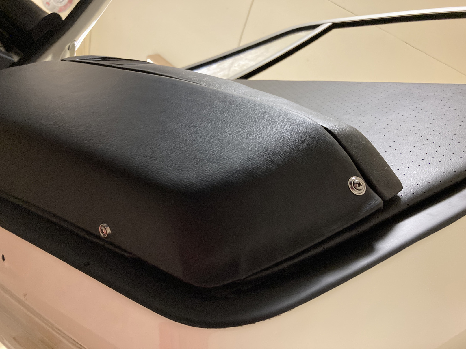 Klädde dem med ett tunt lager med skumgummi. Sedan var det ganska enkelt att klä dem. Häftade och limmade kanten. Jag hade velat fram och tillbaka men bestämde mig till slut för att dessa skulle ha perforerad vinyl som jag har i mitten på sätena och på instrumentbrädan.