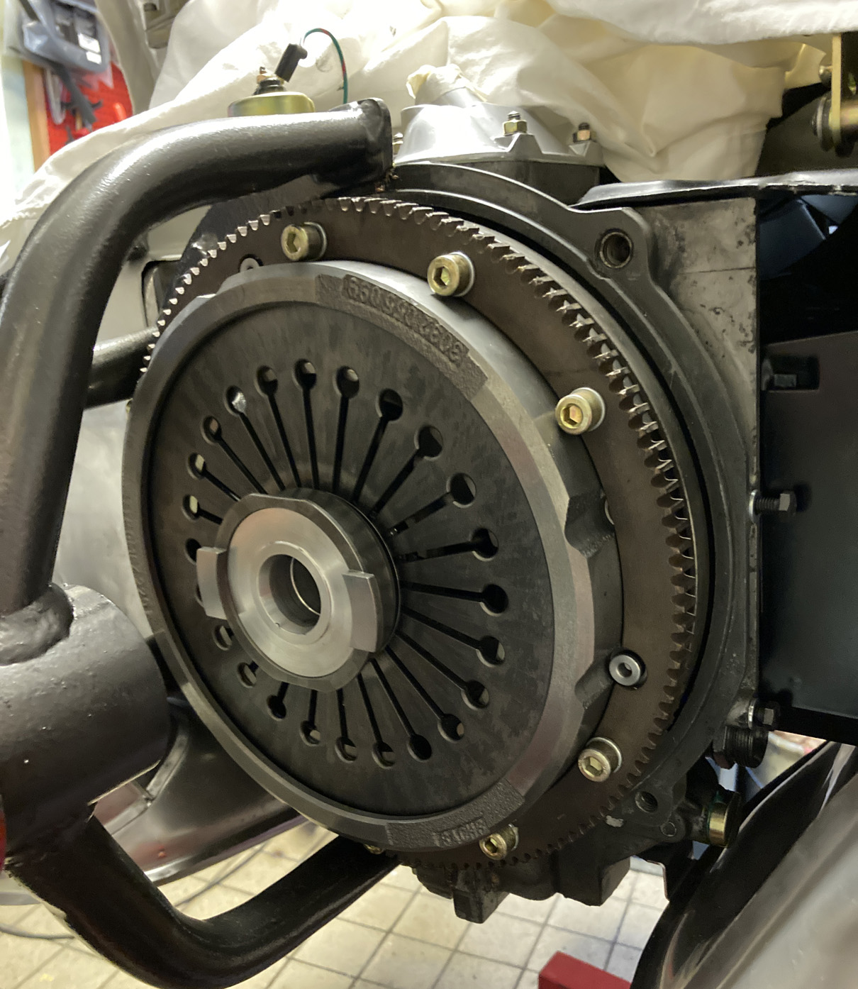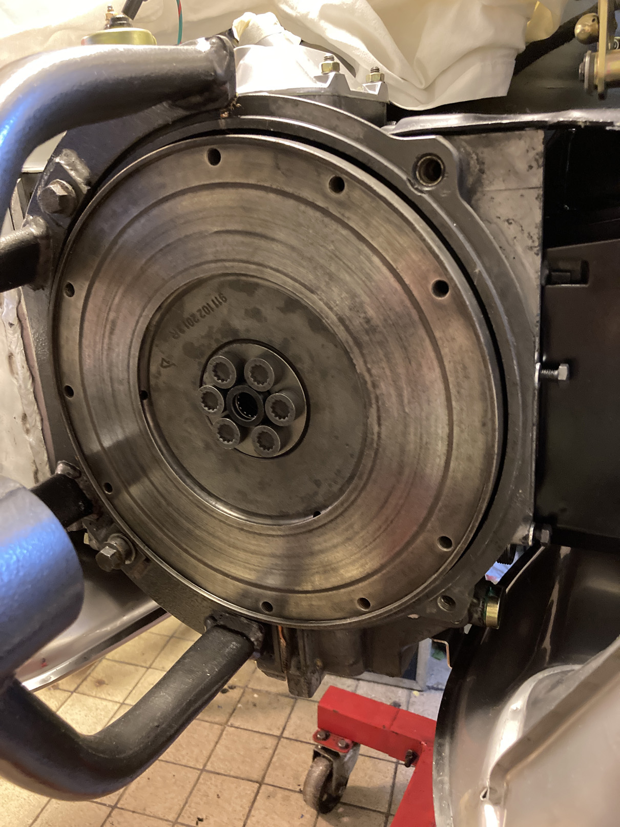 Svänghjulet sitter ju redan monterat på motorn. Detta har jag haft på svarvning hos samma firma som gjorde topparna.