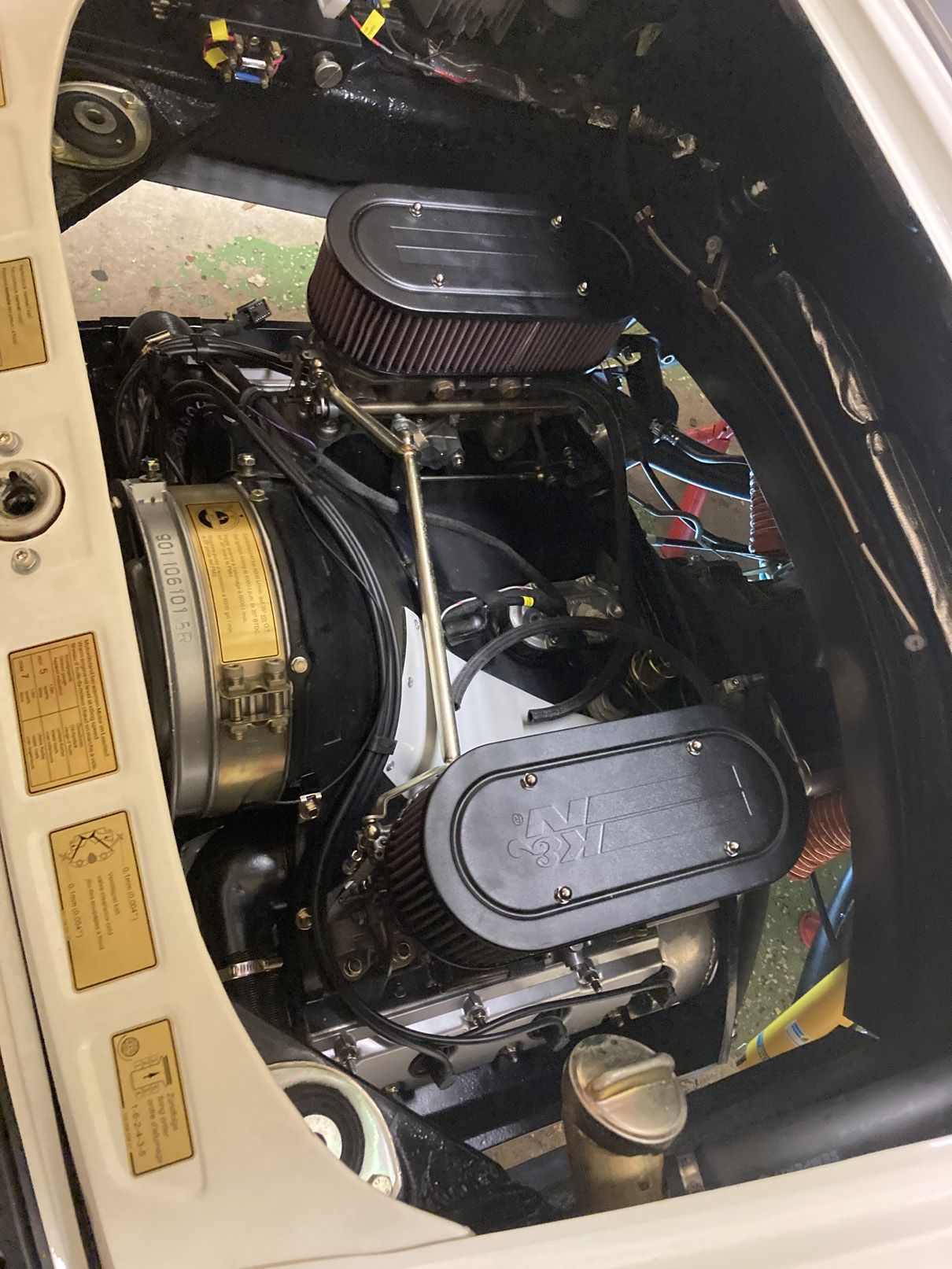 Tack för alla positiva kommentarer. De hjälper gott! Har haft en lite tuffare omgång i garaget de senaste dagarna. Nu när motorn är på plats så ska gas, koppling, växelförare, hastighetsmätare mm kopplas ihop. Det är trångt när man ligger under och ska få alla vajrar och länkage att löpa fritt. "Allt" har krånglat... Återkommer med rapport och bilder! Behöver komma ner i varv lite först bara... ICQ/ad