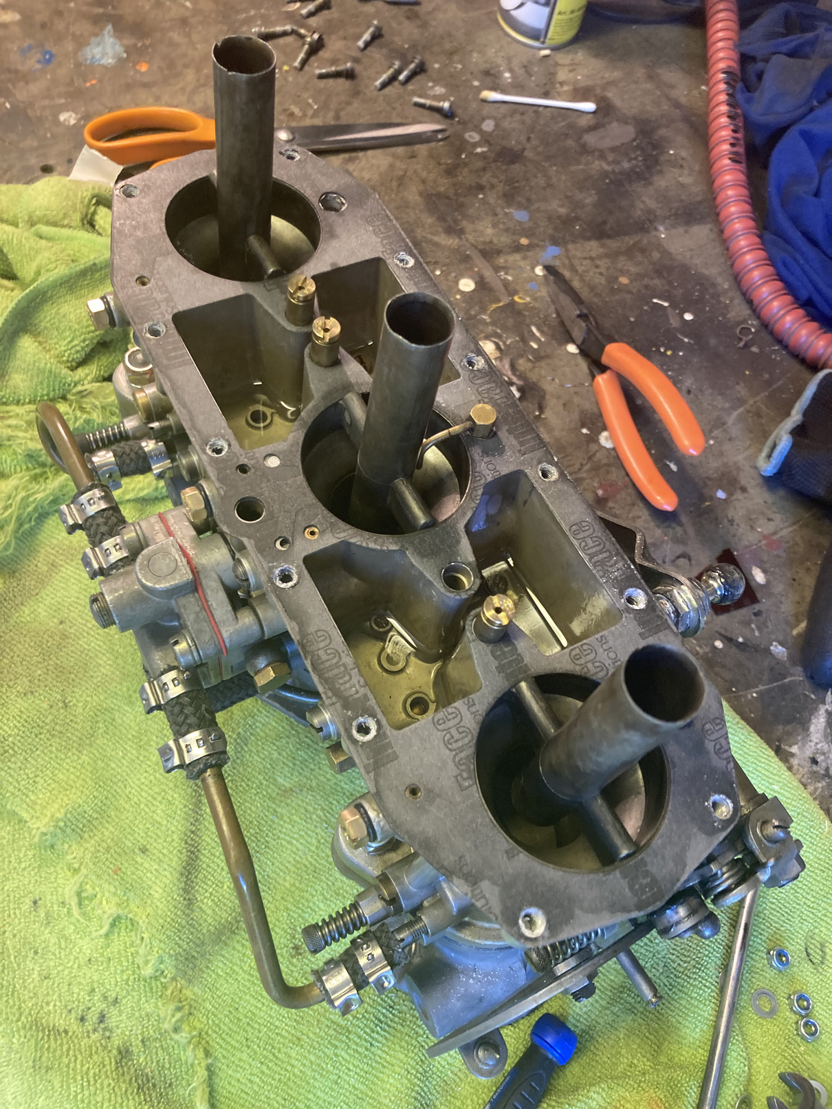 Förgasarnas accpumpar ska kollas. Har konstaterat att något inte är rätt där på några av dem.