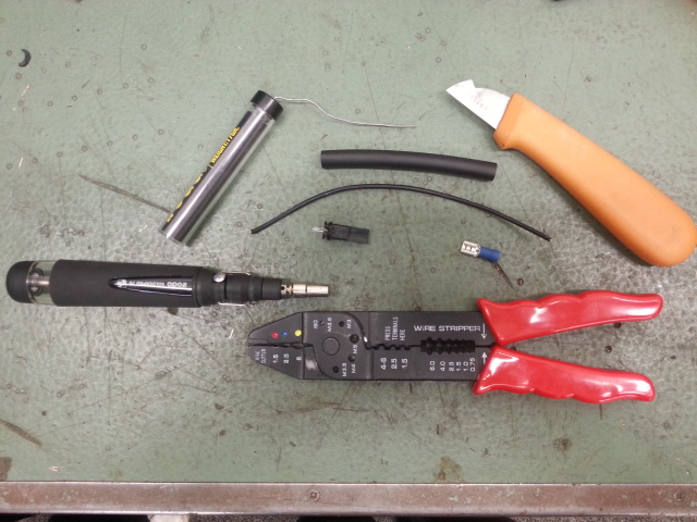 5. Värm på en krympslang över lödningen och kläm fast en kabelsko på andra ändan av kabeln.