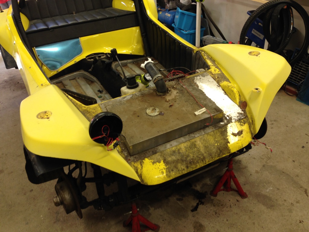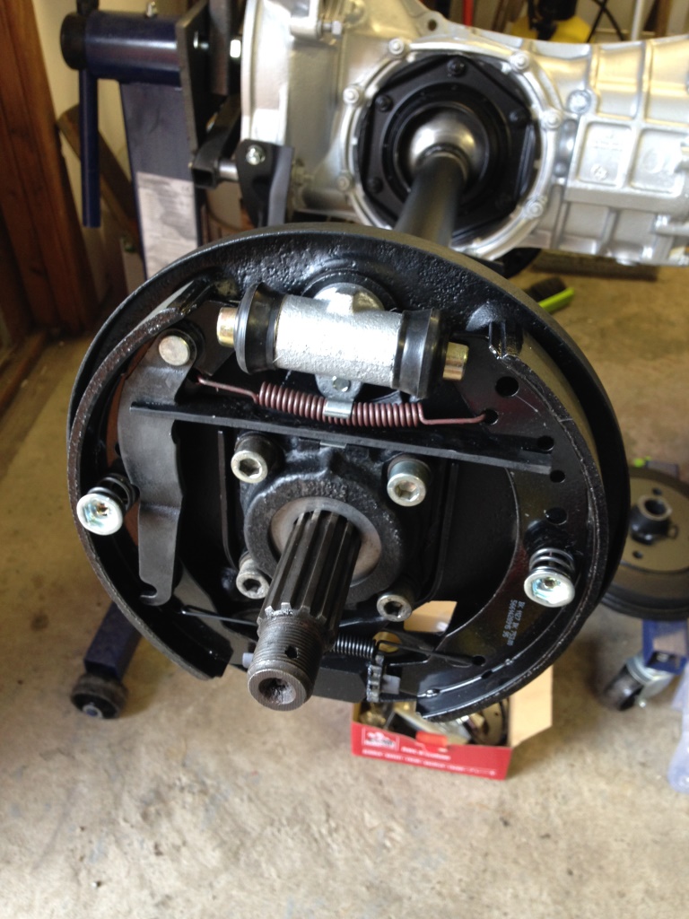När alla delar var färdigmålade monterades de tillbaka. Packboxar, främre och bakre växellådsfästen, bromscylindrar, bromsbelägg, mm - allt är nytt. Vill helst slippa krångla när buggyn väl ska igång och tycker det är värt att kosta på nya saker. I princip allting kommer att bytas till nytt i även i övriga bromssystemet - bromsrör, slangar, huvudcylinder, mm. Bromsoken är det enda som blir kvar, men dessa har renoverats med nya packningar och belägg. Detta beror dels som sagt på att jag vill slippa krångla men också för att jag planerar att köra med silicon-bromsvätska. Denna bromsvätska har fördelen att den inte drar åt sig vatten samt inte löser upp lacken vilket är bra på en entusiastbil som endast går några mil per år. Nackdelen är att den har ungefär samma literpris som en fin konjak samt att den förstör packningar som tidigare varit i kontakt med vanlig bromsvätska.