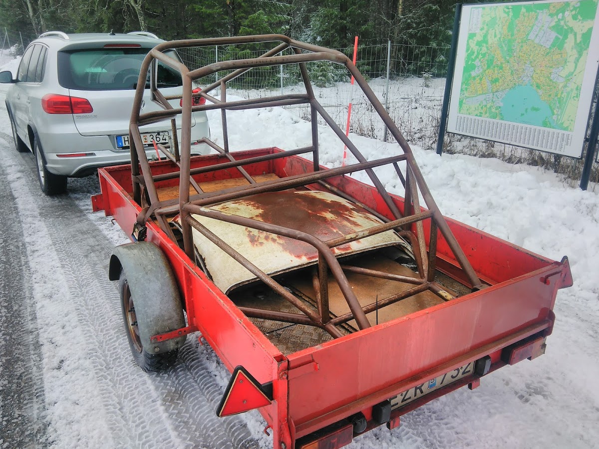 nu är det ju inte bara dragstern som skall fixas man måste ju få in lite lek pengar också, denna skall fixas åt en kompis för att kunna besiktas , kopplings byte fel mod var mont - rost o krock skada bak,kylning till motor m.m +en massa rost på tröskel v-sida,sen skall det på nya breddade skärmar runt om så här har jag lite att göra framöver  ICQ/ad