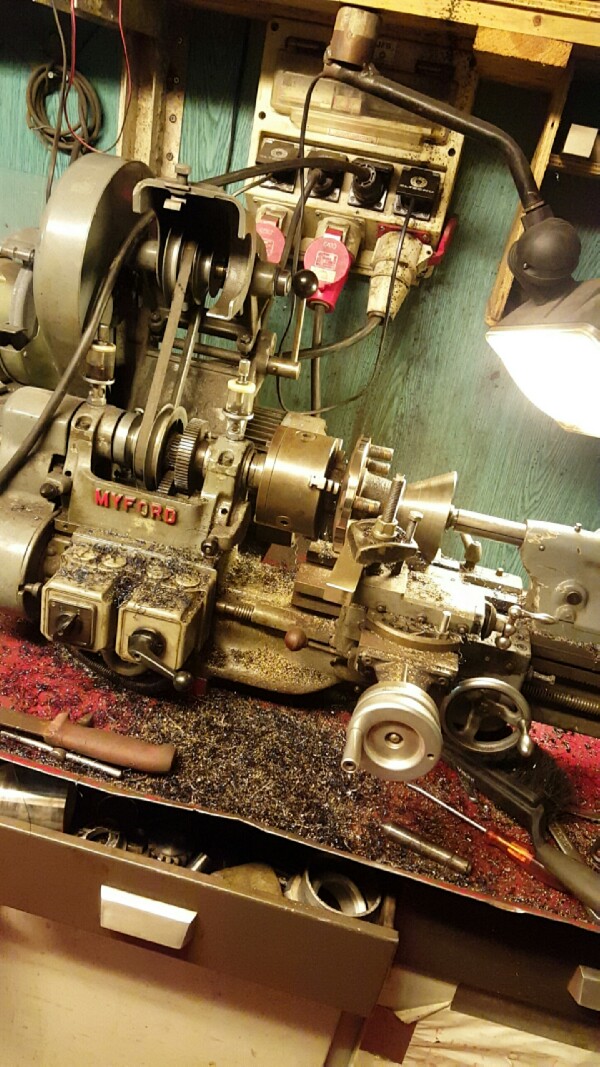 Har gjort klart ett gejdarfäste nu. Svarvade till två distanser och sen passade jag in gejdaren där den ska sitta och sedan svetsade jag fast den med rostfritt tillsatsmaterial.