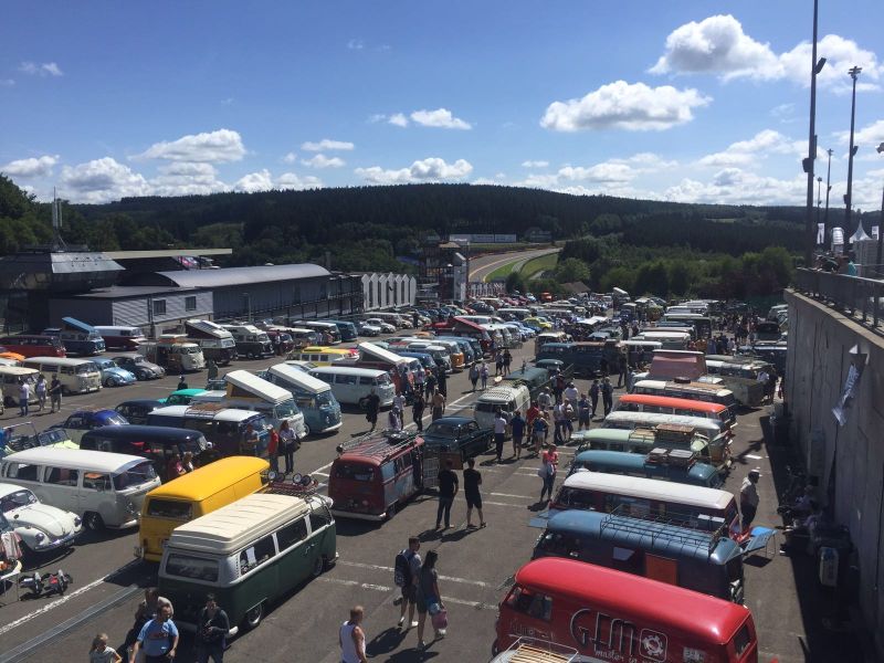 Nåja, vi körde in bilen på området innanför banan och parkerade där. Knallade runt i timtal o kollade på alla bilar,swappet och actionen runt omkring. Såg mycket häftigt och fint men det blev för mycket av det goda. Man hinner inte smälta alla detaljer och mycket roligt missade man säkert oxå. Vi körde ett guidat varv efter en pacecar runt Spa-banan men det gav inte mycket. Man började mer och mer sakna dendär intima känslan som uppstår på BRC eller SCC där man går runt o träffar folk och pratar bilar över nån öl.Vi hade ju tänkt stanna en natt till på Le Bug men sent på eftermiddagen på lördag tyckte vi att vi fått nog och startade upp monstret bland allt folk uppe på parkeringen. Oskyldig som den stått där bland alla andra fina bussar utan egentligen synas,men nu blev det plötsligt liv i folkmassan..