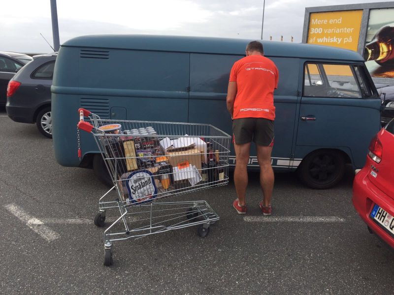 Då blev det måndag morgon o dags för oss att börja den långa resan hemåt. Om bilen var välfylld när vi åkte ner så hade jag sett till att så skulle vara fallet då vi åker hem oxå..För många år sen köpte jag mig den balk som stötdämparna sitter fästa på bak på en 911:a. Den skulle hem nu tillsammans med fyra äkta American Racing fälgar med Porsche bultmönster som jag köpte av en belgare ifjol. Stefan undrade om det inte skulle löna sig att köpa på sig lite vin och öl när det ändå var så billigt,men jag sa att han fick vänta till Puttgarden..