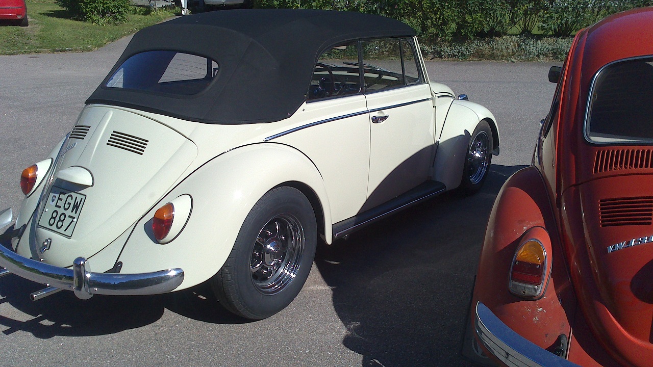 En garagelackad 1200 -73 standard inköpt förra våren för 3000:-. Har under vintern renoverat bromsar etc, så nu är det dags för besiktning. Långt ifrån en utställningsbil, men lite kul iom att den har samma färg som min cab  ICQ/ab .