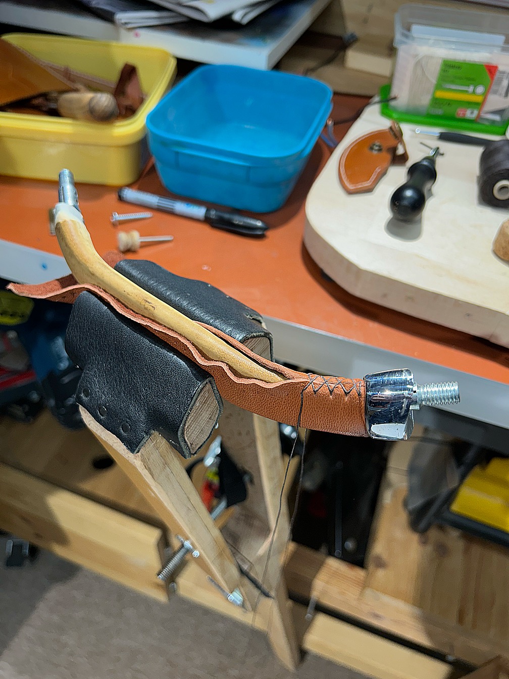 Då var det dags för kurvhandtaget. Provade med ändstyckena på och jag tycker att det blev bra för att vara gjort av en amatör. Fortsätter nog imorgon.