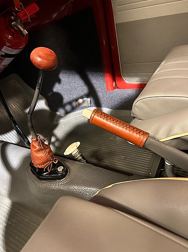 Jo handbromsspaken står nog på tur. Hade inte tänkt ha något läder framme vid knappen. Men det tåi att fundera över. Känns kanske för modernt.