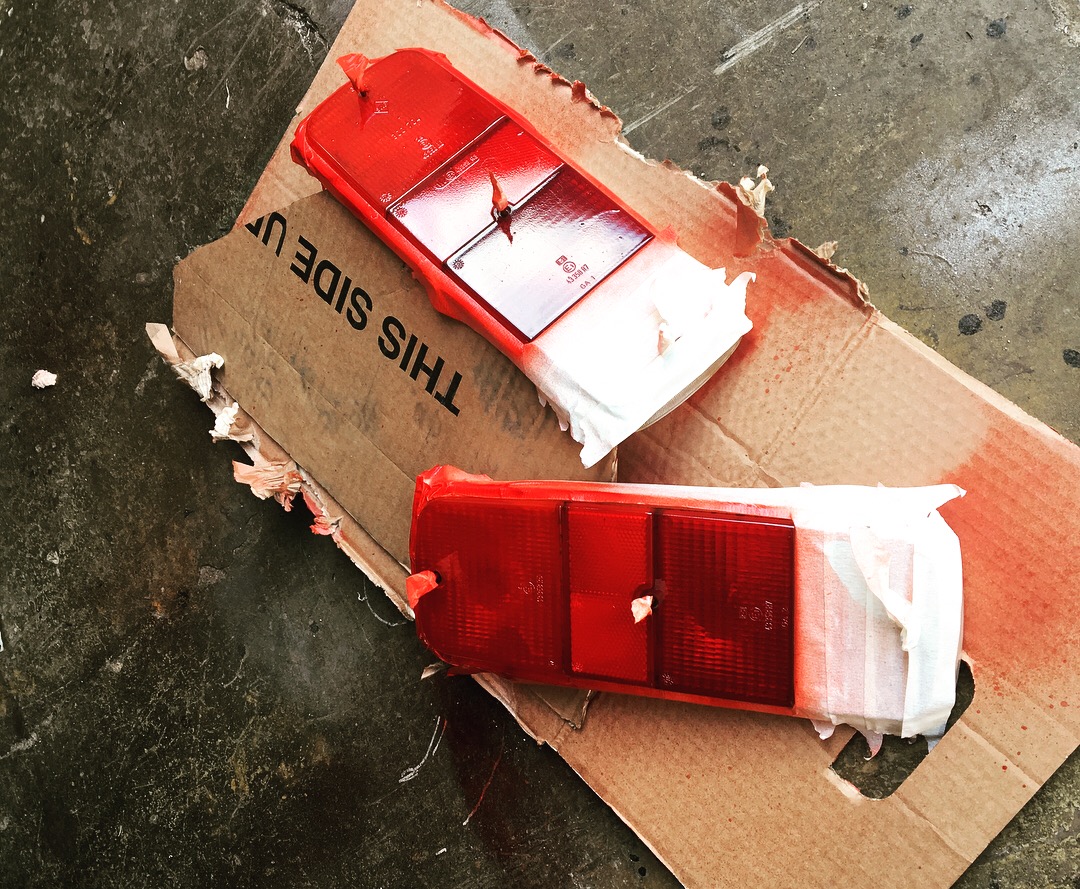 De orangea reflexerna på bakre blinkers tog jag till slut och färgade röda. Ska inhandla gul blinkerslampa så att det blinkar orange trots toningsfärgen.