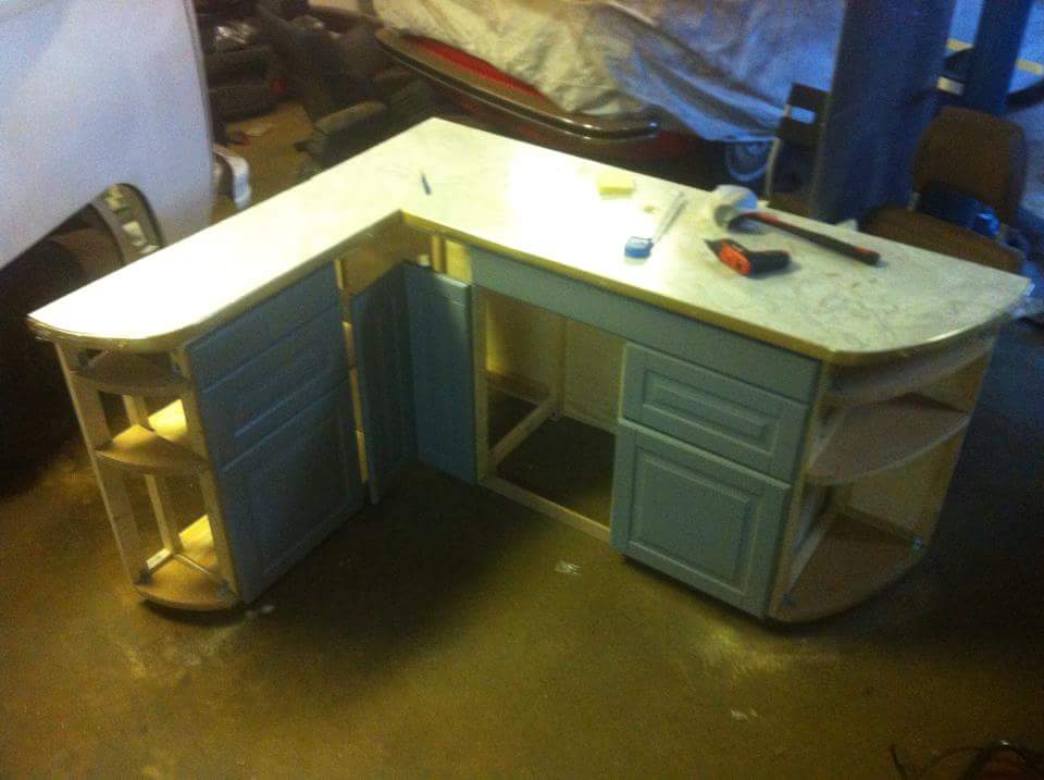 Så vi målade klart kök och insida med sittytor och sängram istället.
