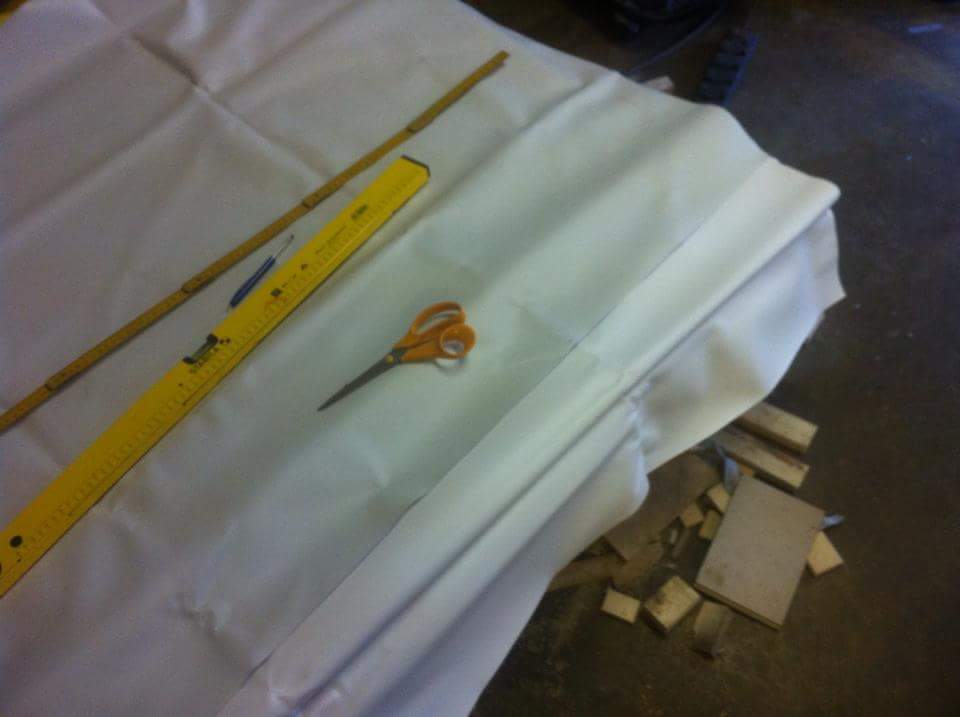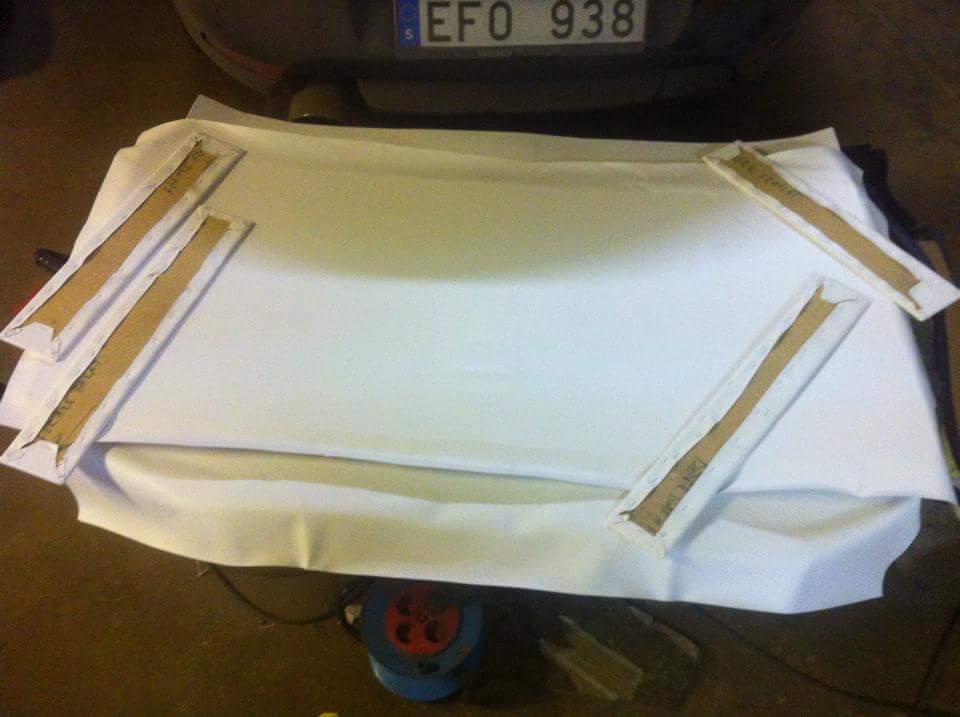 Innertaket har klätts med vit vinyl. Vansinnigt svårt att hålla rent i Sveriges skitigaste garage men jäkla snyggt när det sitter på plats.