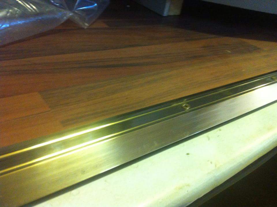 Sedan ska guld/mässinglisten på plats efter att bänkskivan kapats till.