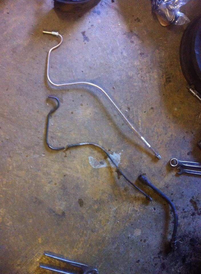Bromsslang höger sida samt bromsrör byttes, bockades och återmonterades.