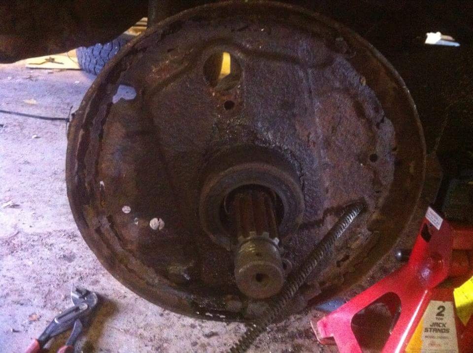 Hela handbromsmekanismen satt fast likaså automatiska justeringen satt som berget. På höger sida var dessutom hjulcylinderns fäste spräckt rakt av.