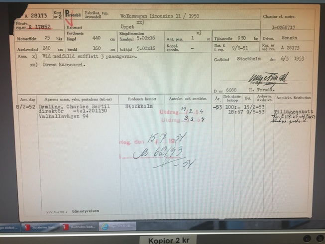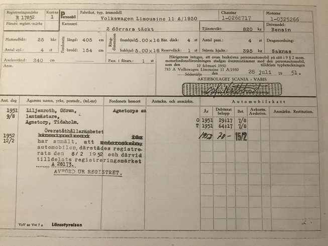 Han köpte tydligen en begagnad 51:a i Tidaholm och sände ner till Drews. Här är kopior på båda registreringsbevisen.