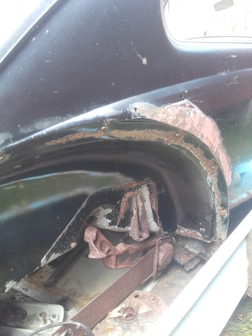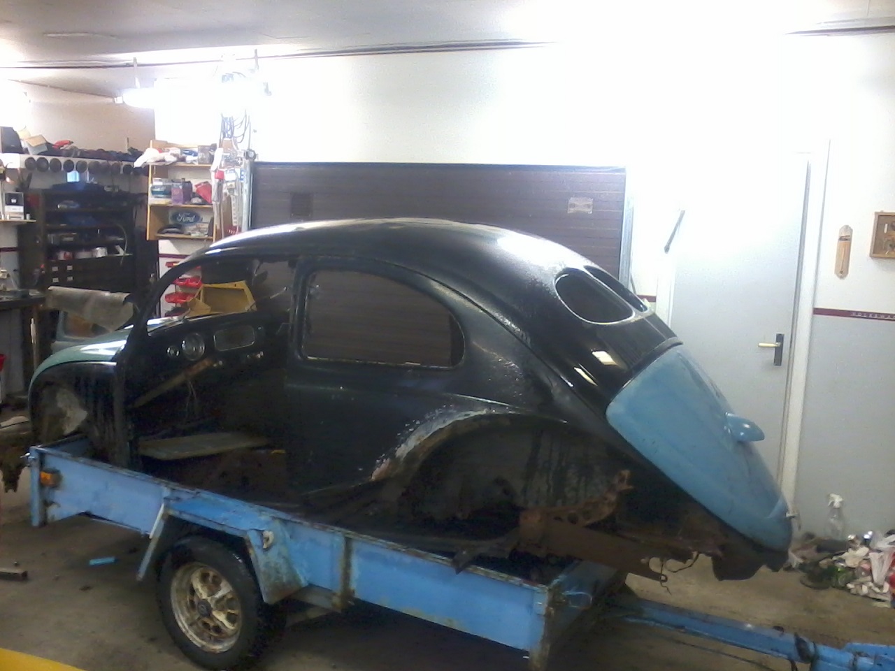 Det är en 57a kaross med papper och 52ans framskärmar,skufflucka från samma med kombinerad skyltbelysning och bromsljus,bakljus från 52 (små runda)