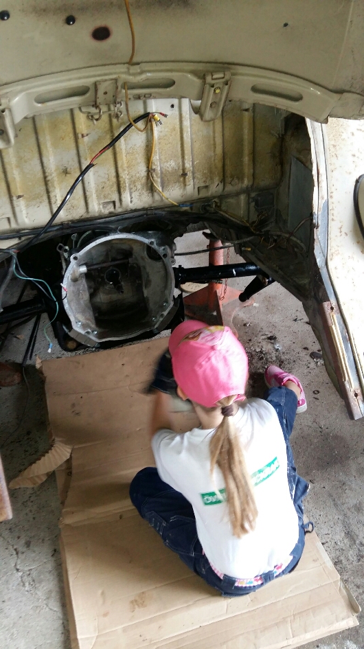 Fick ju hjälp av dottern så växellåda på plats.