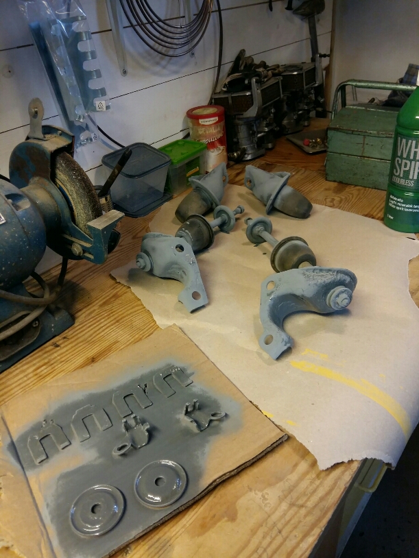 Ny växellåda rengjord . Nu kan jag byta pakboxar gummidamasker och ljullager. Ska även måla allt. Funkar motor färg tro?  ICQ/ab