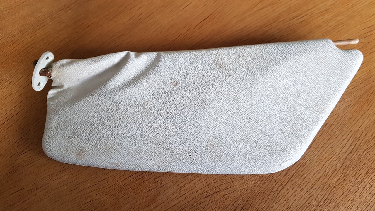 Håller själv på att laborera med solskydd då jag ska renovera mina till cabben. Konstruktionen är en metalbåge och pressad skumplast som blir fnöskigt med åldern och smulas sönder. Du kan ju jämnföra din med mitt skelett. Det ser ut som ditt siäppt uppe vid fästet som på min översta bild. Det är svetsen som släppt i "gångjärnet"