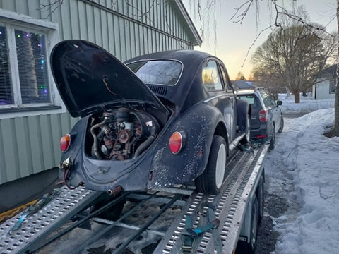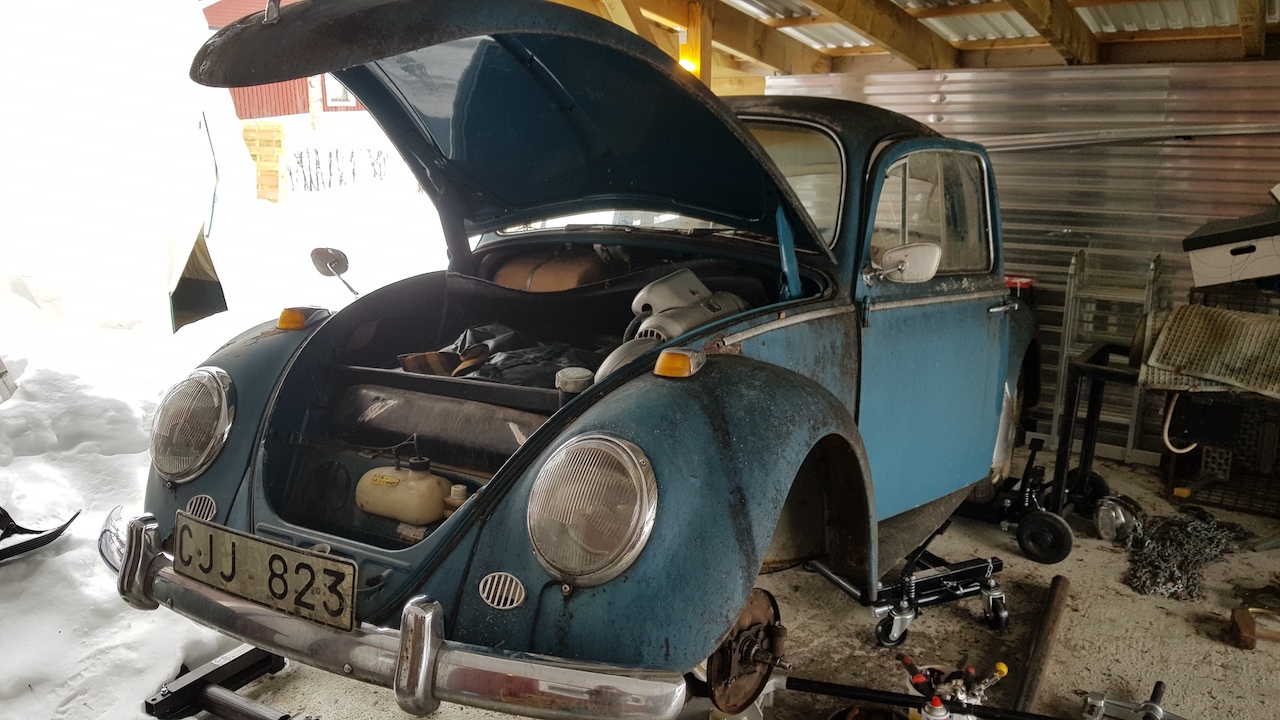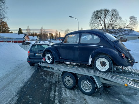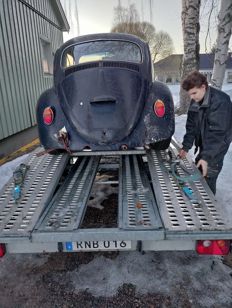 Då for just den svarta 65:an iväg till en VW-polares son här i stan där de har tänkt renovera och förhoppningsvis köra med den framöver. Jag glömde dock fota då de drog iväg med den på mitt släp men jag får säkert låna en "hämtbild" av dom sen.