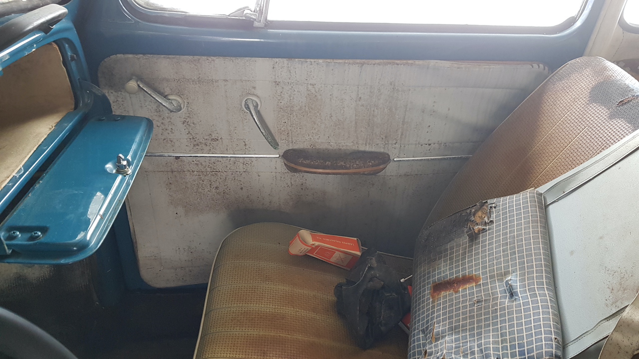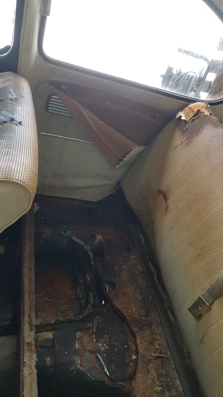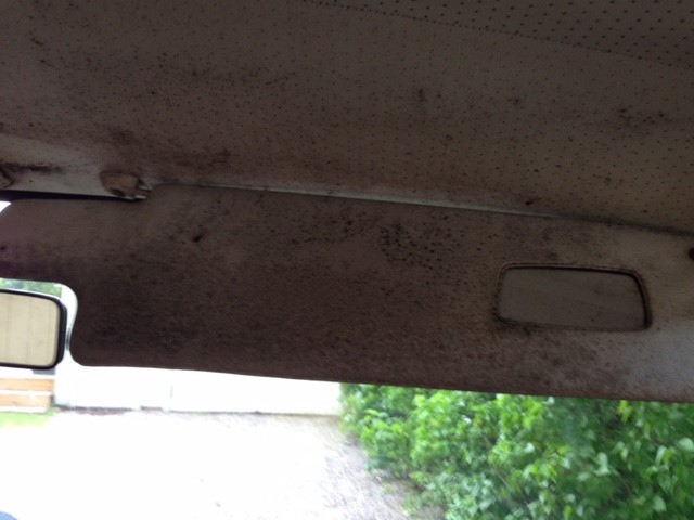 Jo, inredningen i denna sköna böna är full av mögel och luktar APA!  ICQ/bc  Jag vet inte riktigt hur jag ska angripa detta men troligen så måste allt ut och saneras. Kom gärna med tips om vad som biter på möglet. Kolla det vita håriga möglet under dash´en. Stolarna har svartmögel. Golvmattorna har någon blandning av 30 år i ömsom -30 på vintern och + 30 på sommaren, inne i kupén kan man bara gissa hur varmt det varit...