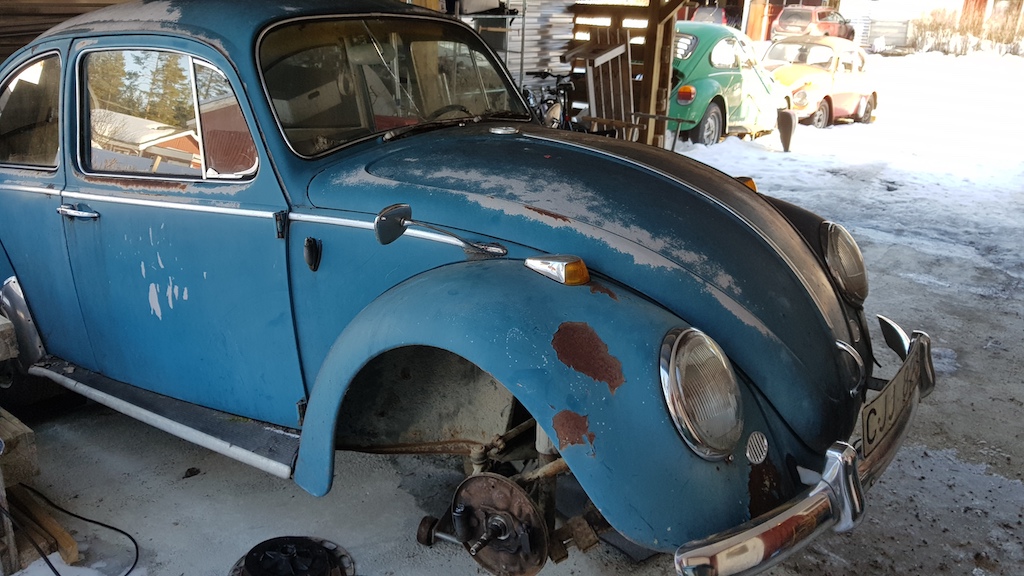 Häromdagen bytte jag bort den gröna 1303s 73:an mot att få inredningen i 66:an (Blåtanden) uppsytt med ny stoppning. Vilken fantastisk affär för mig, en bubbla bort från uppfarten och frun får sjyssta säten. Det ska gå i ljusblått och beigeaktigt. Me like it ALOT!