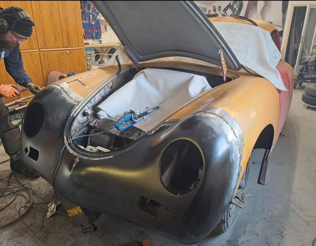 Hittade just igen den här tråden och kanske dags för uppdateringen för nu 6 år senare har jag äntligen hittat en 356 igen vilket känns så jäkla kul . Köpte denna tidiga 57a som blev avställd redan 1967 och även den här blev tidsenligt ombyggd till b modell på vad jag gissar 60tal . Den saknade bla dörrar,drivaxlar ,stolar mm och letar delar . Börjat test montera ihop bilen för att se vad som finns och vad som lirar och skruvat i lådan så nu står den för första gången på många år på egna hjul . Inte värst mycket rost men ska byta trösklar mm och fronten tillbaka till en a modell
