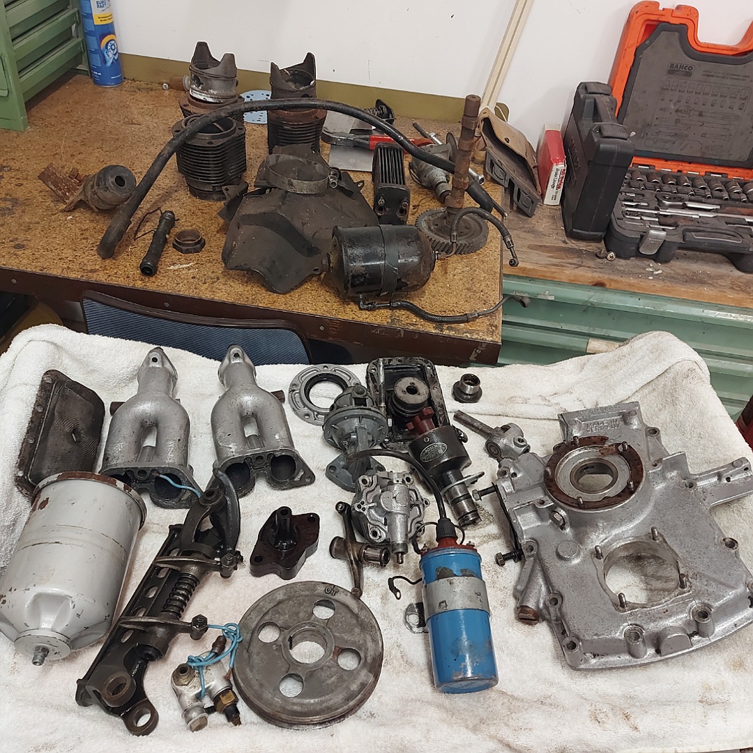 Svetsat vidare på fronten och börjat gå igenom och tvätta upp lite motordelar från orginalmotorn som delvis följde med i lådor så hoppas få ihop en motor av det i framtiden