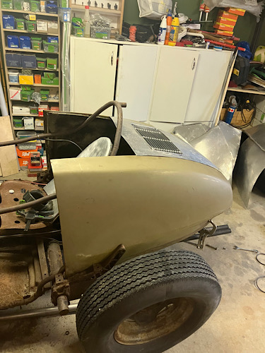 En kompis kom förbi med Citroën ds skärmar som vi börjat prova in på bakändan och tycker den ser lite snabbare ut nu
