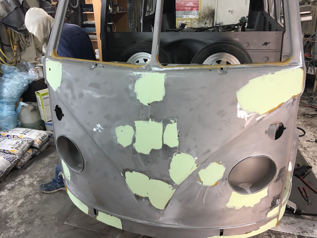 Som ni ser på bilderna är det inte en fullstor ruta. Jag har valt att använda en gammal baklucka (buss 50-tal) med lilla rutan som utgångsmaterial. Det ska förstås lite mer plåt på sidorna om luckan.