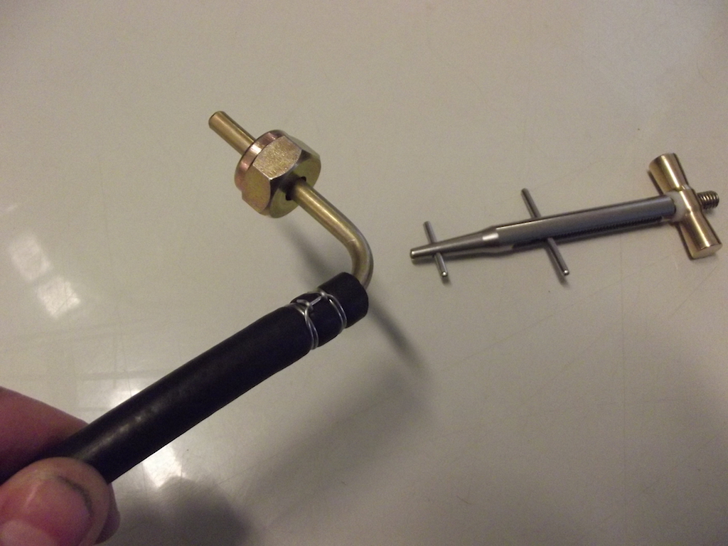 I bakgrunden ser man verktyget som användes för att göra "najjningen". Kanske inte så många som känner till, det heter clamptite och ger fina slanganslutningar, dock funkar det inte om det är trångt där den ska najas.