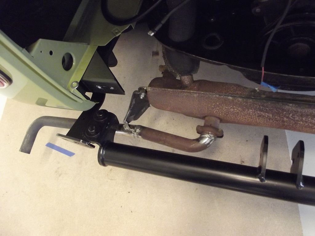 Tänkte att det vore kul med dragkrok på bussen. Hittade en variant som inte inkräktar så mycket på utrymmet under motorn och avgas.