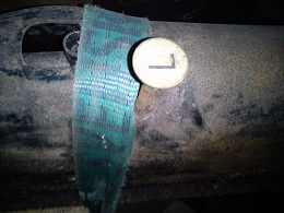 Riktades ihop med hjälp av graderad vantskruv. 15 mm bred var sprickan