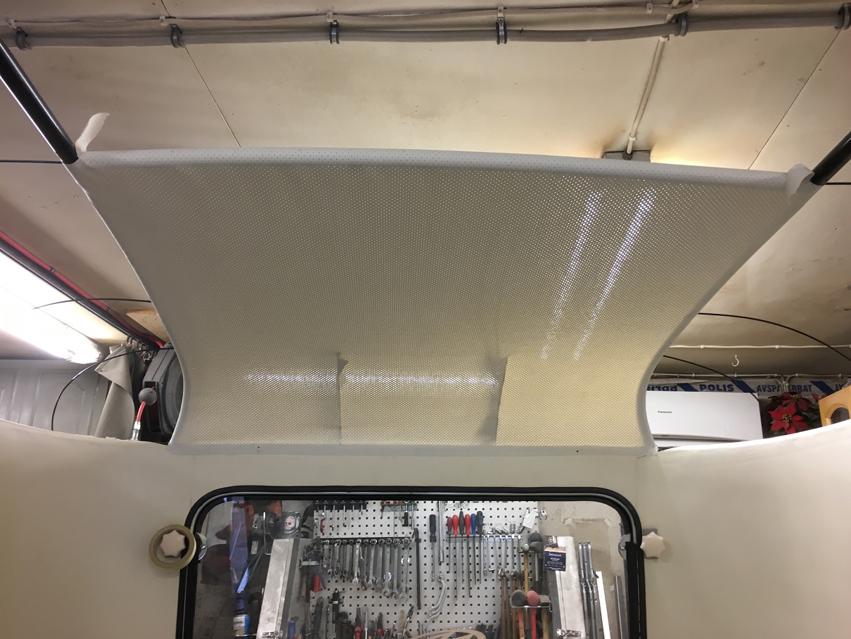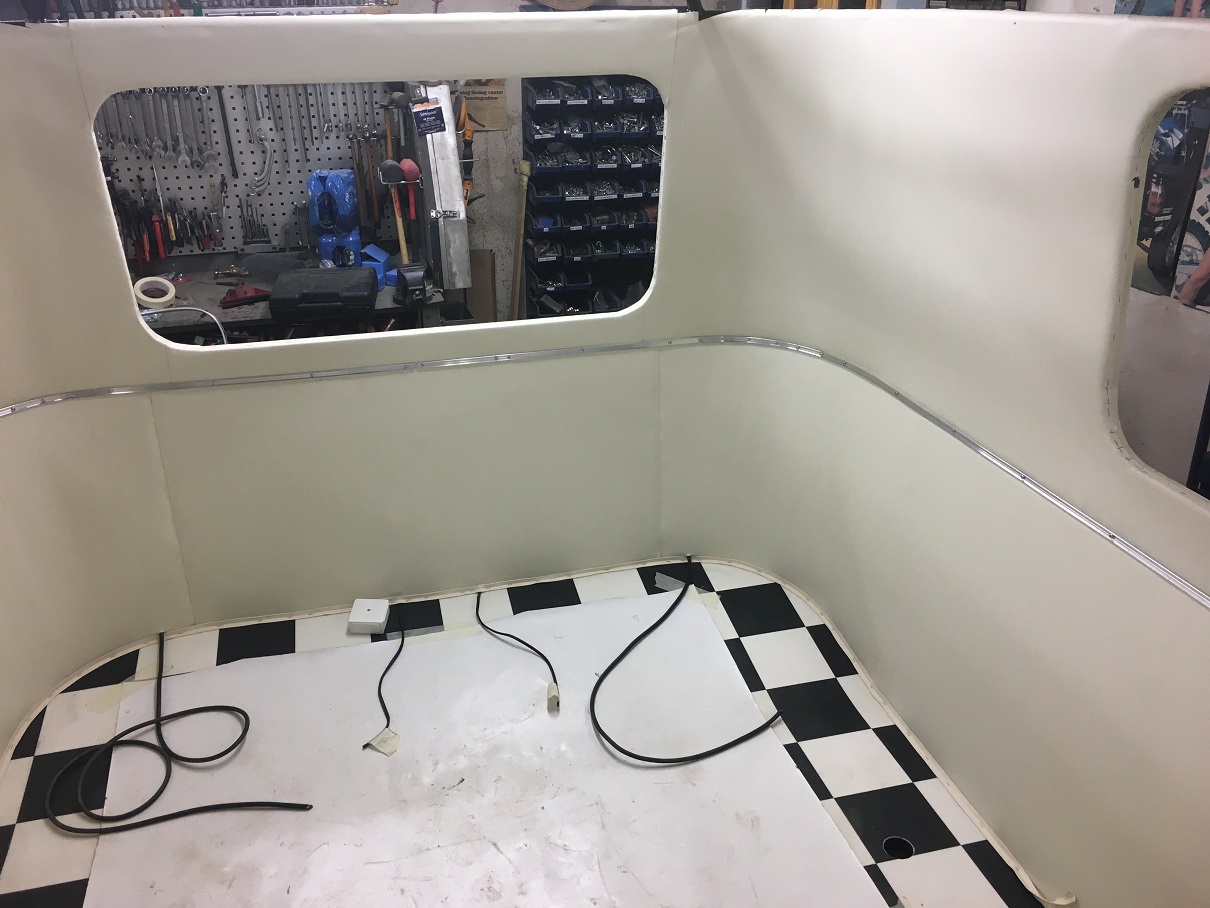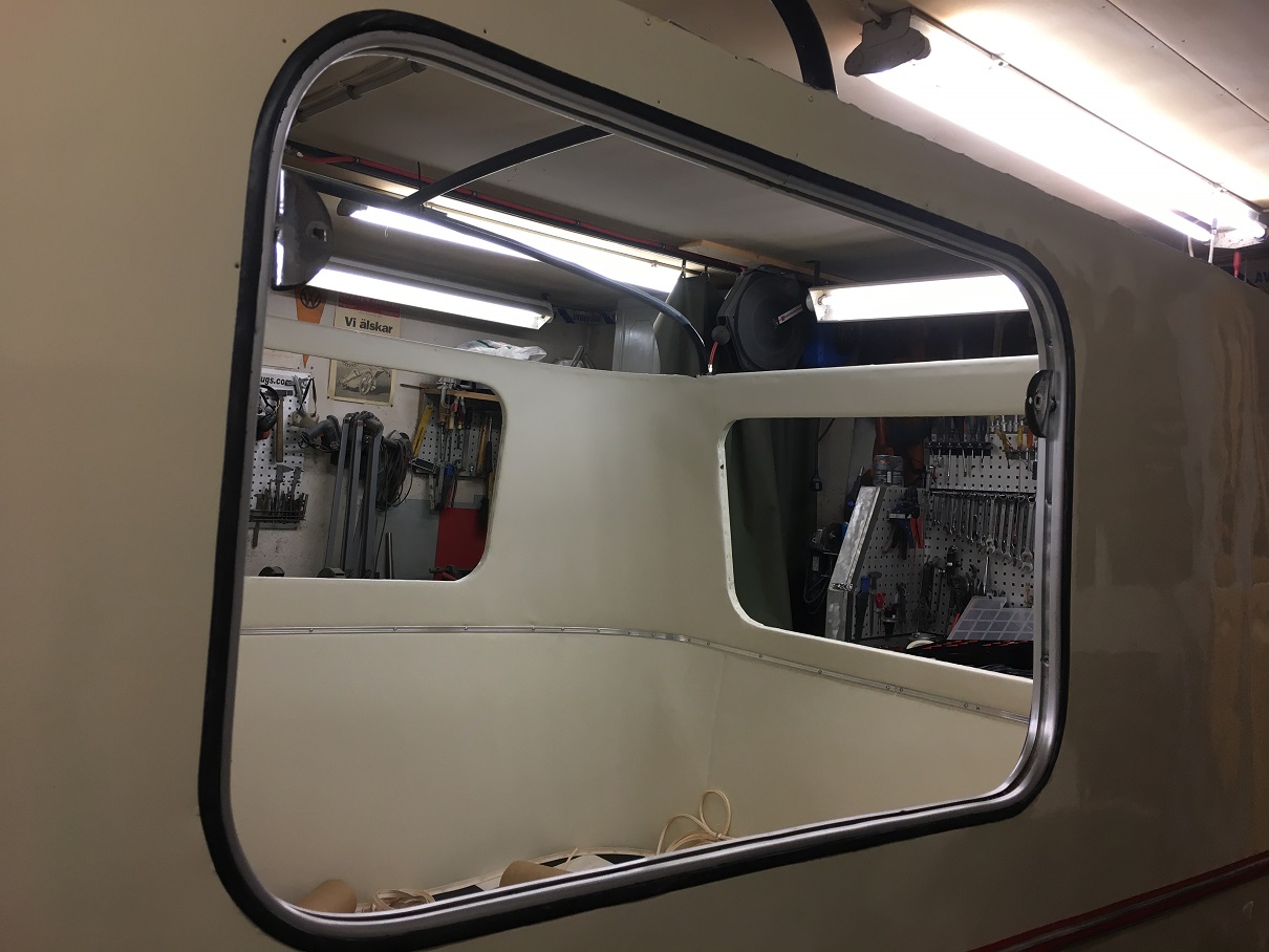 Hade en liten bit list kvar som var original ifrån 1965, å både den och täcklisten som knäpps fast på alulisten är identiska med den vi köpte som sitter i flång nya Eriba husvagnar