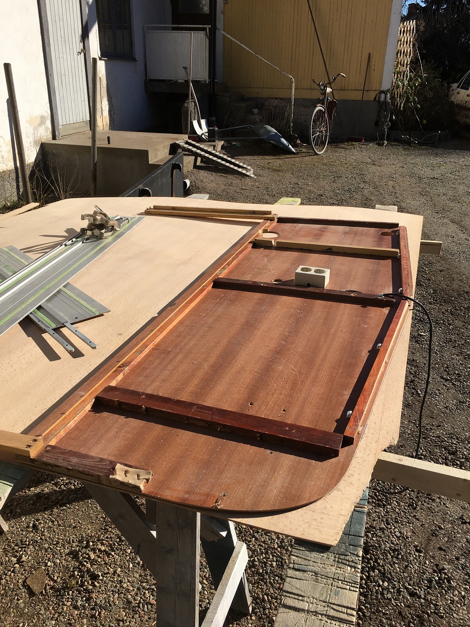 Sen gömdes skarven där de var skarvat under listen som var så svår att få tag på pga ohjälpsamma husvagnsfirmor..