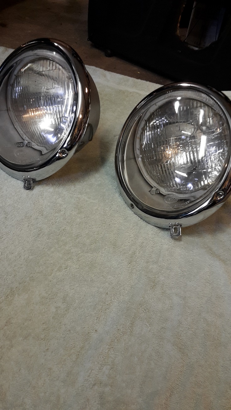 Vad som är godkänt och vad som slinker igenom är 2 olika saker. Min 912a hade kvar sealed beam strålkastarna när jag köpte den. När den ena gick sönder var det dock ologiskt att montera nya sealed beam lampor, universal 7" H4 insatser passar rakt av i lyktorna istället för sealed beam lampan. Samma sak med lyktorna ovan, in med H4 insatser och man har liggande lysen med H4 på bubblan. Köp med positionsljus i insatsen/ "reflektorn" bara om det är till Vw.