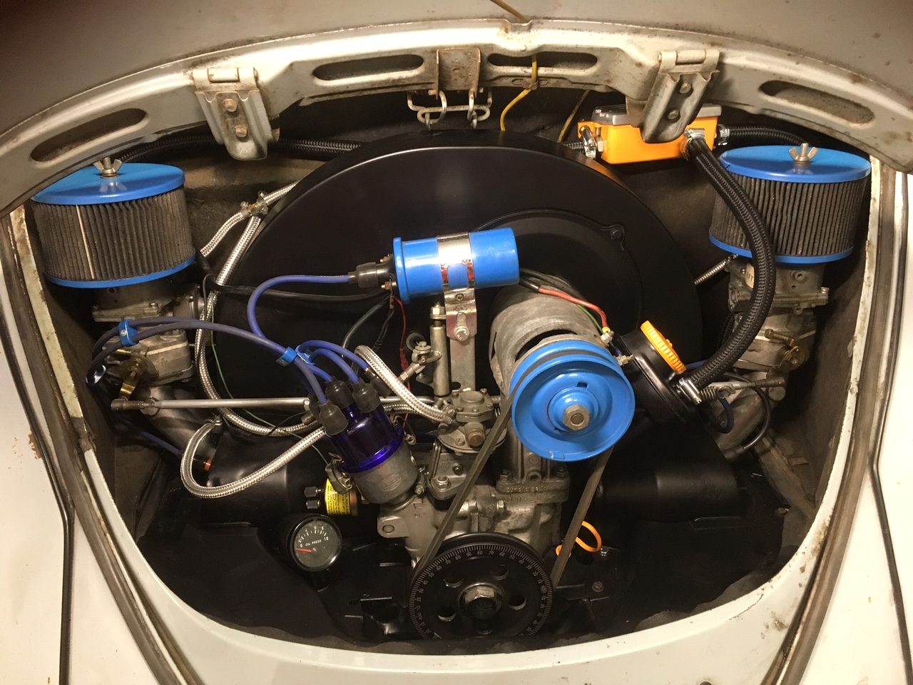 Finns termostaten och spjället till kylluften kvar? Öppnar detta som det ska? Finns det bensin upp till förgasarna när du ska starta eller måste pumpen fylla dom? Är det axpumpar på förgasarna och de fungerar som de ska? Jag hade testat med en elbränslepump för att utesluta lite felkällor, kan ju även vara att det kommer dåligt med soppa fram till pumpen och att motorn går magert och blir varm för det! Tjuvluft?