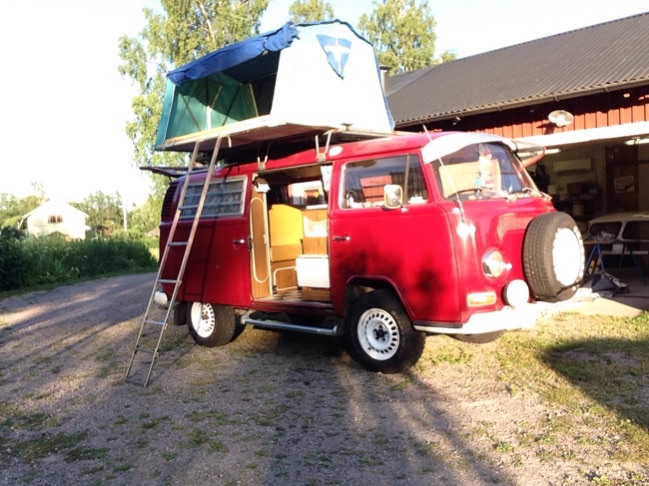 Efter att i nästan ett år stått i skuggan av en totalrenovering av en 60-tals kultbåt, Fjordling 17 har äntligen bussen fått lite kärlek. Garagedammet är borttvättat, takräcket är bytt och taktältet monterat. Snart dags att rulla ut på semester.