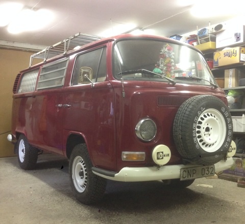 Alltså, den här bussen gillar jag. Jag har en osänkt -72 jag med med lite tjockare däck på, så det är riktigt kul att se någon som går vägen som jag funderat på. Snyggt jobbat! Ser sjukt bra ut med höjning och extraljus!