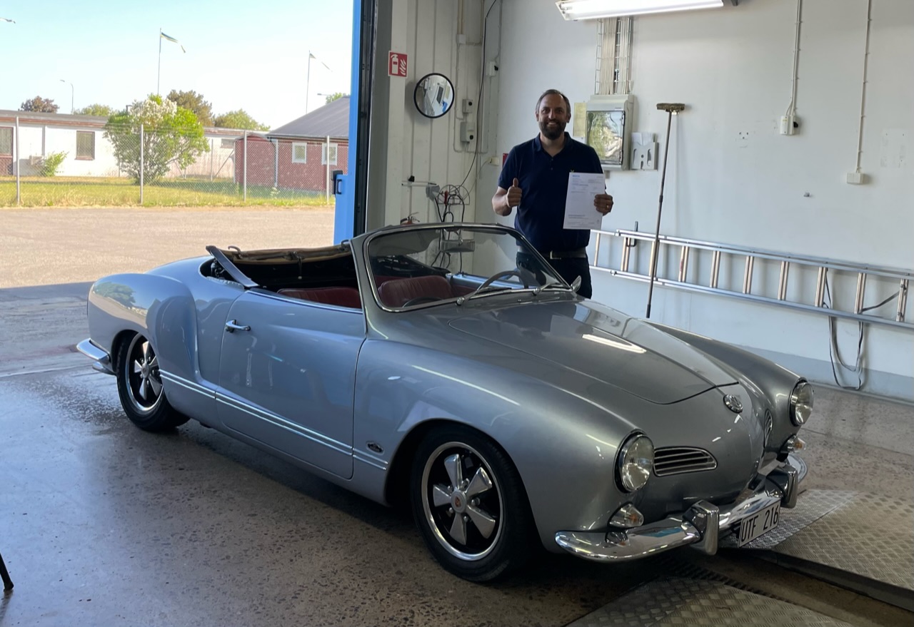 Äntligen besiktad efter 17 år i min ägo. Återkommer med detaljer men sufflett är ej monterad och en standard 1500 tjänstgör under luckan. Målet var att köra dottern på studenten och det är onsdag nästa vecka.